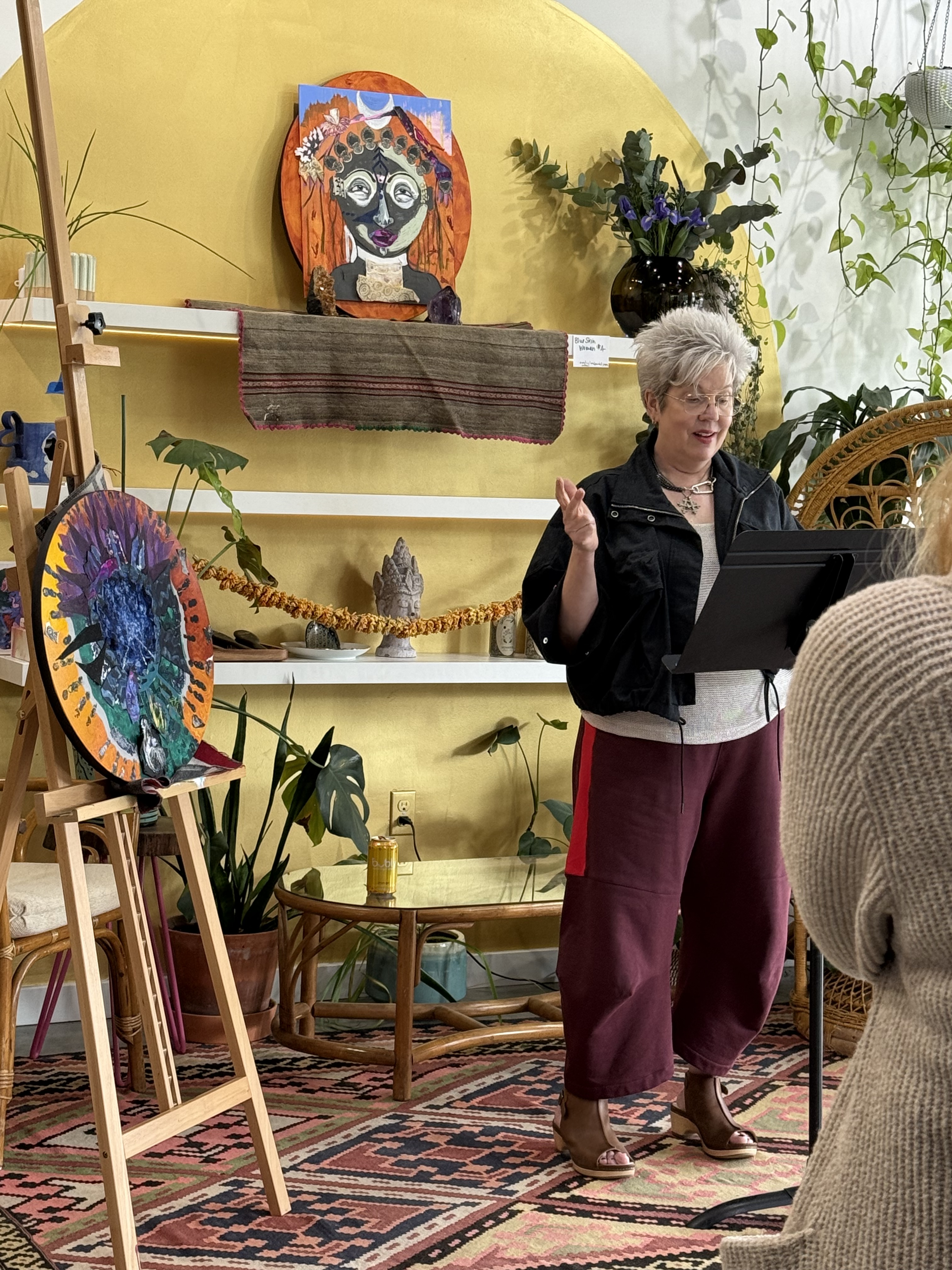 Maila has a BA in Psychology from Willamette University, an MA in Counseling Psychology from Lewis and Clark College, and holds a PhD in Mythological Studies and Archetypal Psychology from Pacifica Graduate Institute. Looking back, she recognizes that she has always been a depth mythologist, seeking the visible and invisible Stories that shape a life and a community, by applying a variety of manner and materials. Maila is a Vajrayana Buddhist in the Magyu Lineage that reveres and magnifies the sacred feminine force in Buddhism. She lives in Portland, OR with her muggle husband John.
